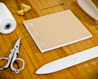 Nuestra clase de encuadernación japonesa está pensada para introducirte en el mundo de la encuadernación tradicional, y para que puedas llevarte a casa un cuaderno hecho por ti mismo. En este taller, te proporcionaremos un kit de encuadernación japonesa completo con todo lo necesario, los kits incluyen: hojas de alta calidad, herramientas, agujas, hilos y otros materiales necesarios.