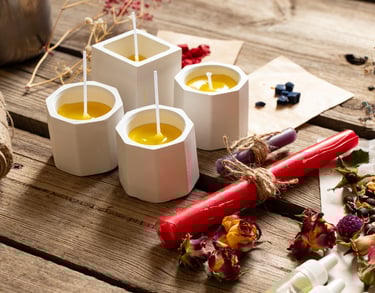 En este taller aprenderemos el arte de las velas decorativas, crearás una vela única diseñada por ti, podrás elegir entre un porta velas de vidrio o cerámica que decoraremos juntos, en el que luego te llevarás la vela que cocinemos en clase, y también una vela que haremos mediante el molde que elijas. Podrás decorar tu vela con ricos aromas, o lo que tú prefieras. Este taller está pensado para pasar un rato agradable y relajado en compañía, no importa si no tienes experiencia, aprenderás lo necesario para crear una pieza única que dará un toque especial a tu hogar.
